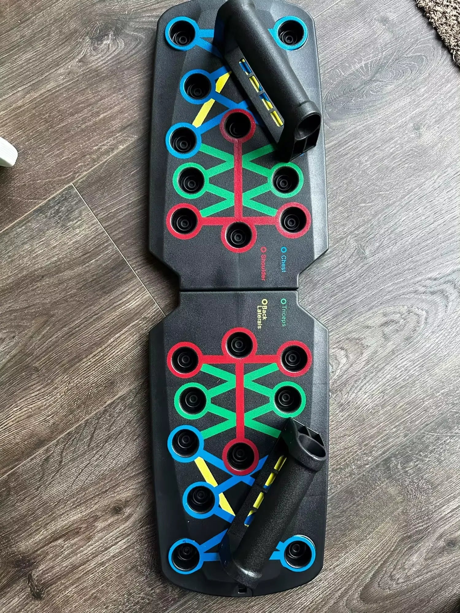 Med högkvalitativa material och en hopfällbar design, ger denna träningsbräda ett stabilt stöd för armhävningar och andra styrketräningsövningar. Träna hela kroppen och justera motståndet när du blir starkare, och njut av en plattform som håller sig stadig även under de mest intensiva övningarna. Skapa en varierad träningsrutin med ett mångsidigt verktyg som är byggt för att hålla.